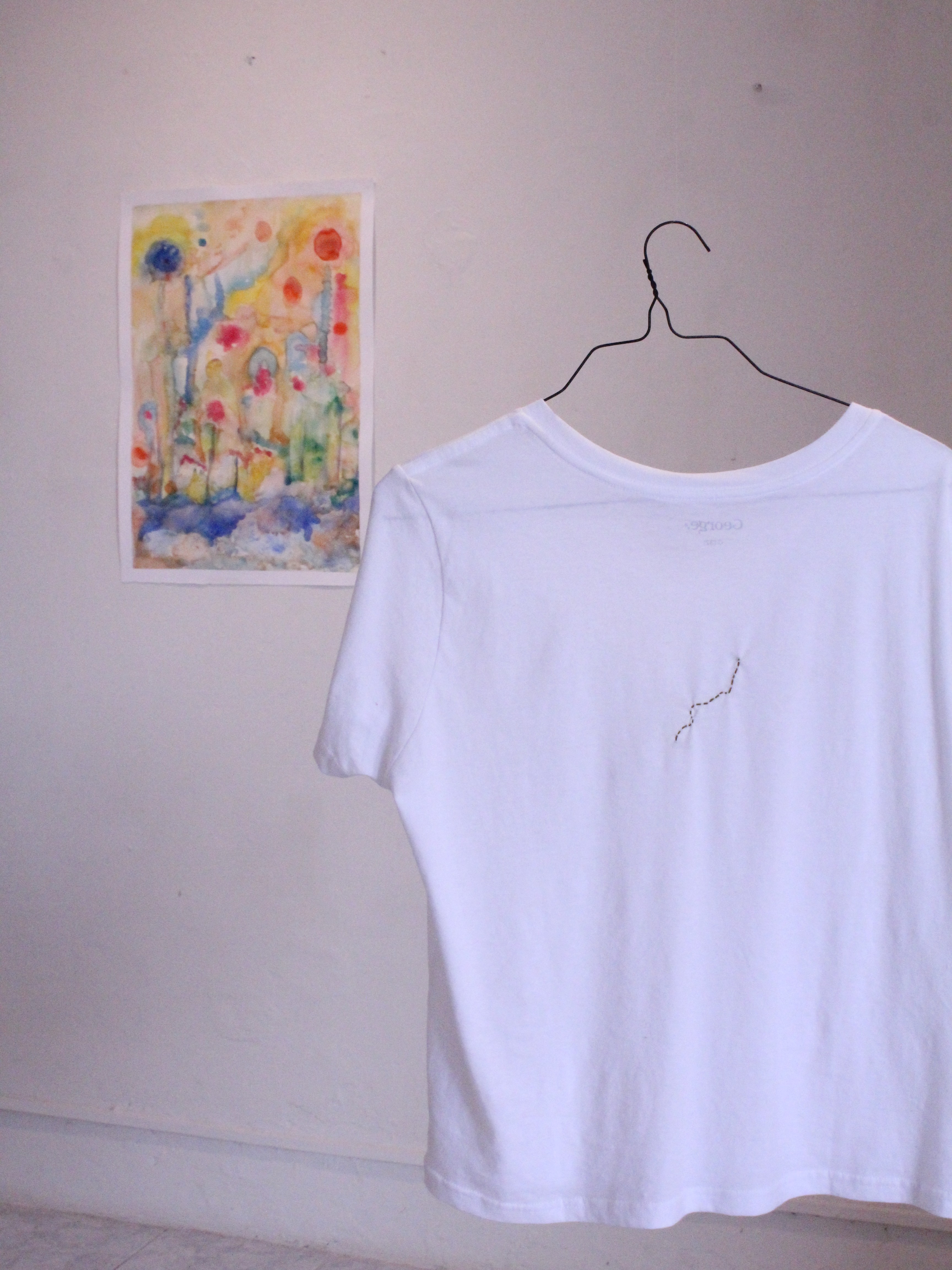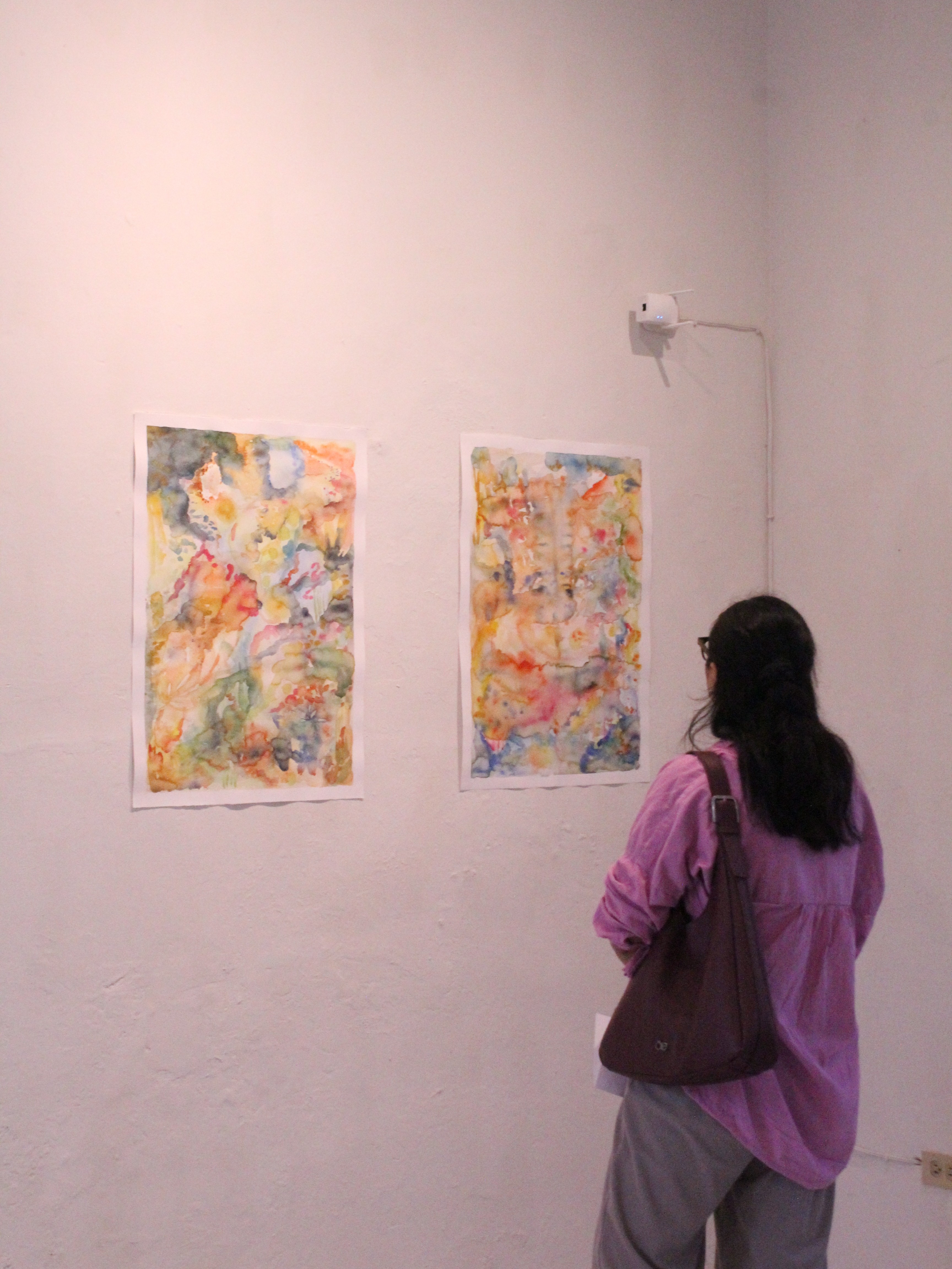 Durante su residencia, Andrea trabajó con acuarelas y video para explorar la identidad como un cúmulo de elementos simbólicos, cambiantes y encriptados en la performatividad de habitar el cuerpo y transitar el territorio